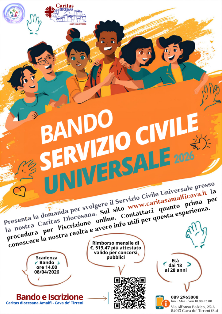 È stato pubblicato il nuovo bando del Servizio Civile Universale, datato 24 febbraio 2026, che offre a ragazze e ragazzi dai 18 ai 28 anni un’importante opportunità di crescita personale e di servizio alla comunità con un rimborso mensile di 519, 47 al mese. Anche la nostra Caritas diocesana, associata a Caritas Italiana, partecipa al bando con il progetto “Gli altri siamo noi – Campania”, attivo nell’ambito del Centro di Ascolto, cuore dell’accoglienza e del sostegno alle persone in difficoltà.
